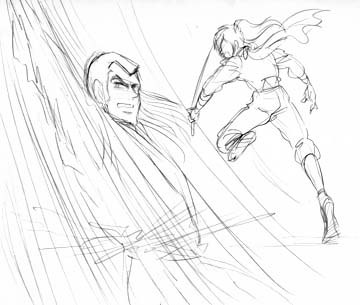 島崎氏、Miyukiを含むグループによる、専門学校卒業制作アニメーションの原画ラフスケッチ。